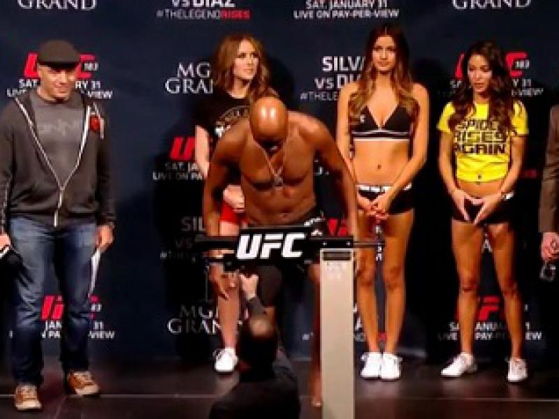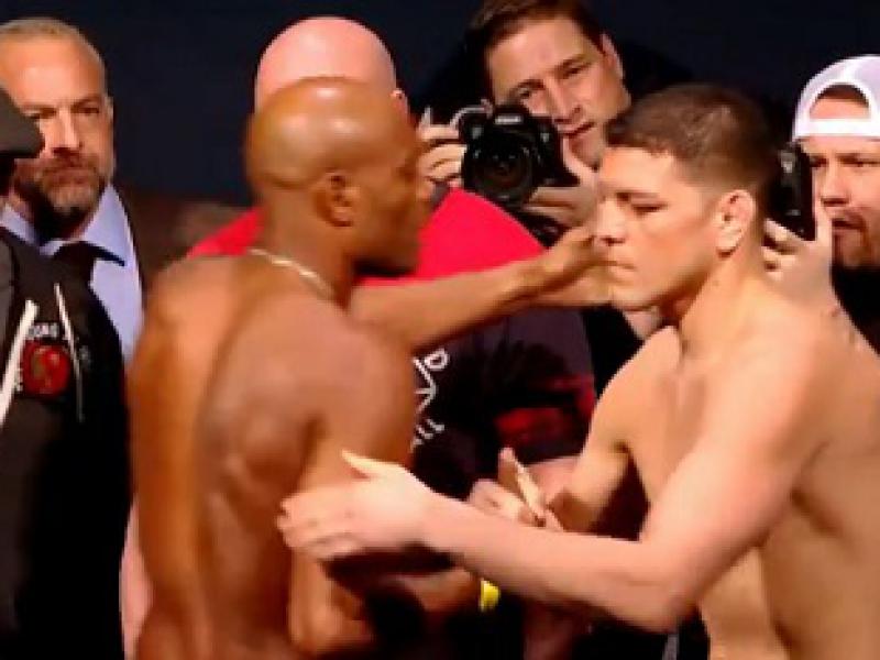 Nick Diaz, seu adversário deste sábado, também cumpriu a expectativa e bateu o peso. Ele subiu na balança ao som de "uh, vai morrer".