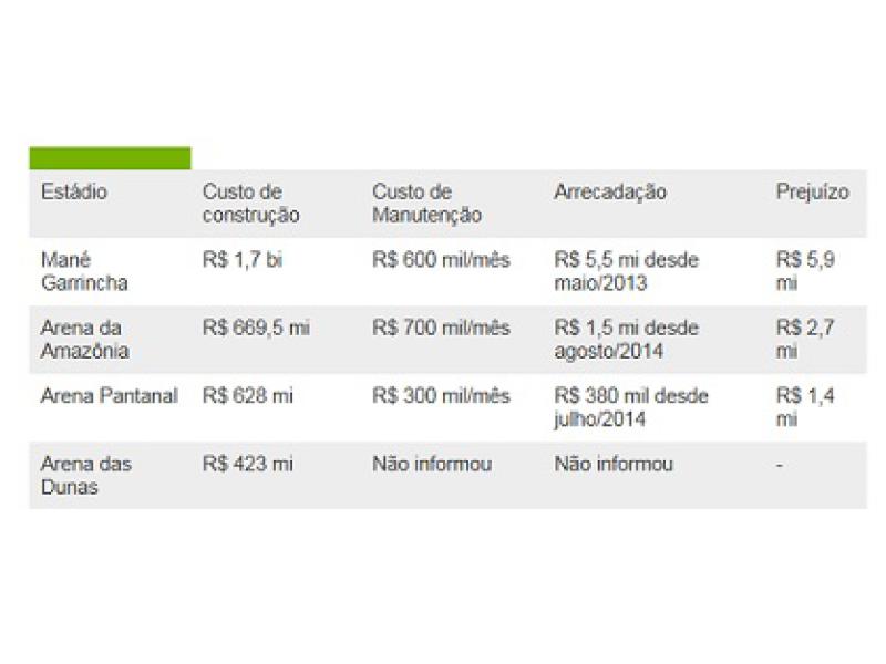 Com exceção da Arena da Amazônia, os outros três estádios estão passando por auditoria para investigar possíveis irregularidades nas contas, que pode indicar o valor real do prejuízo.