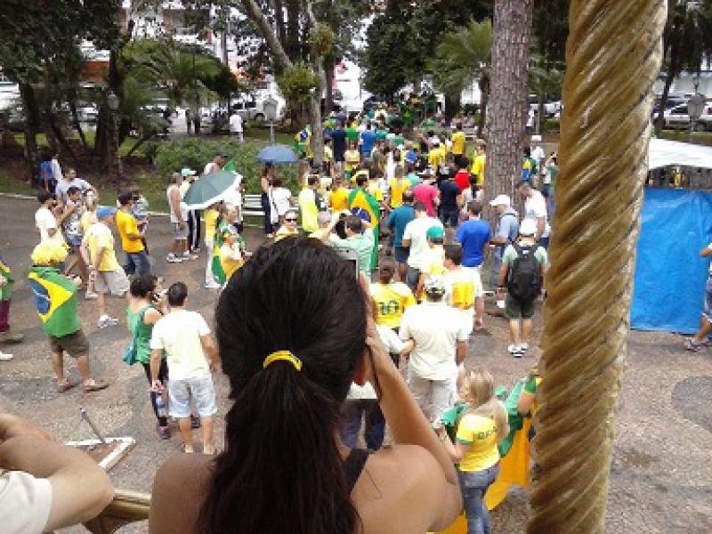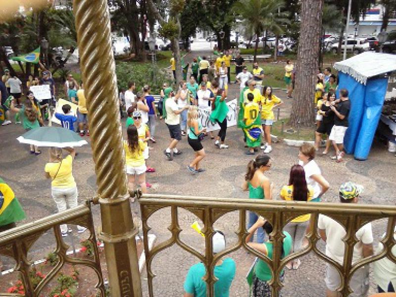 Um grupo de pessoas protestou na manhã deste domingo (15), em São Roque (SP), contra a corrupção no país. A manifestação foi na Praça da Matriz e, segundo a Polícia Militar, 80 pessoas participaram. Para os organizadores, cerca de 200 pessoas foram às ruas.