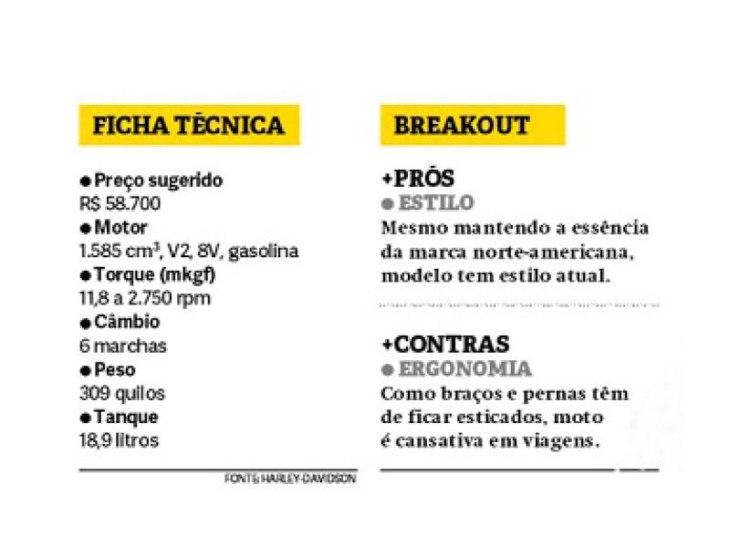 A Harley-Davidson é frequentemente associada a motos de estilo retrô, mas vem investindo em produtos que fujam desse estereótipo. O mais recente é a Breakout, que é montada em Manaus e parte de R$ 58.700.