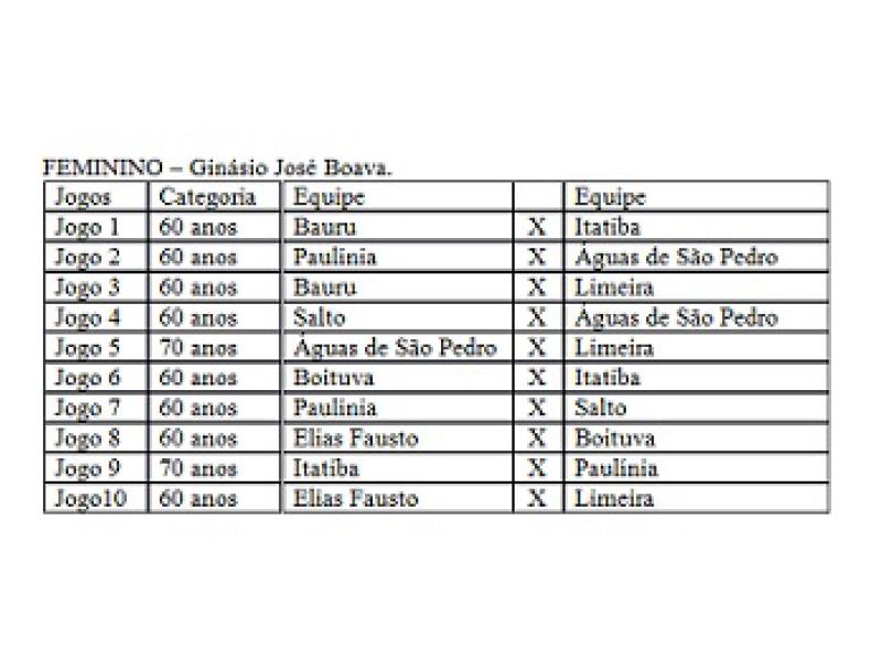 Os jogos dos times masculinos acontecerão no Ginásio do Lar Itatibense da Criança e dos femininos serão realizados no Ginásio Municipal 'José Boava', a partir das 8h." (Fonte: ACPMI)