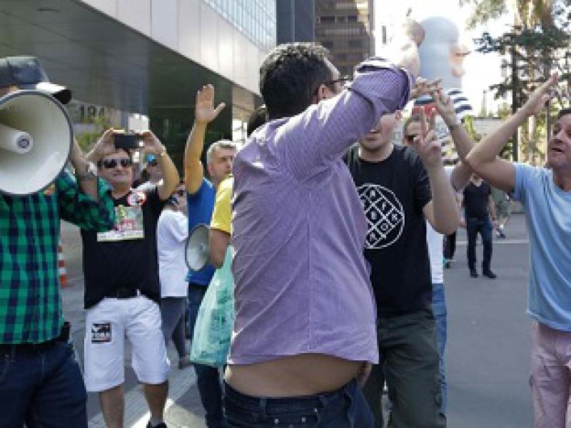 A Polícia Militar precisou fazer um cordão de isolamento para separar os dois grupos. Com ânimos acirrados, o grupo contra o boneco gritava "Não vai ter golpe" e chamavam os manifestantes de "fascistas". Com bandeiras do Partido dos Trabalhadores, eles pediam para o boneco ser desmontado.