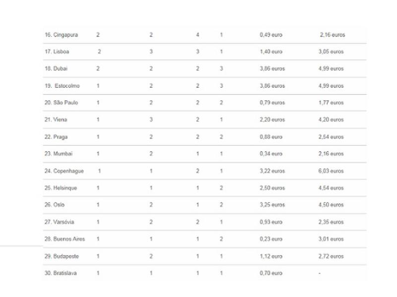 É importante ressaltar que os únicos itens cujos preços são avaliados são o transporte público e o café latte do Starbucks. Nas demais categorias, o site analisou a quantidade de lojas com variedade de produtos nas categorias destacadas. (Fonte: Paula Zogbi/InfoMoney)