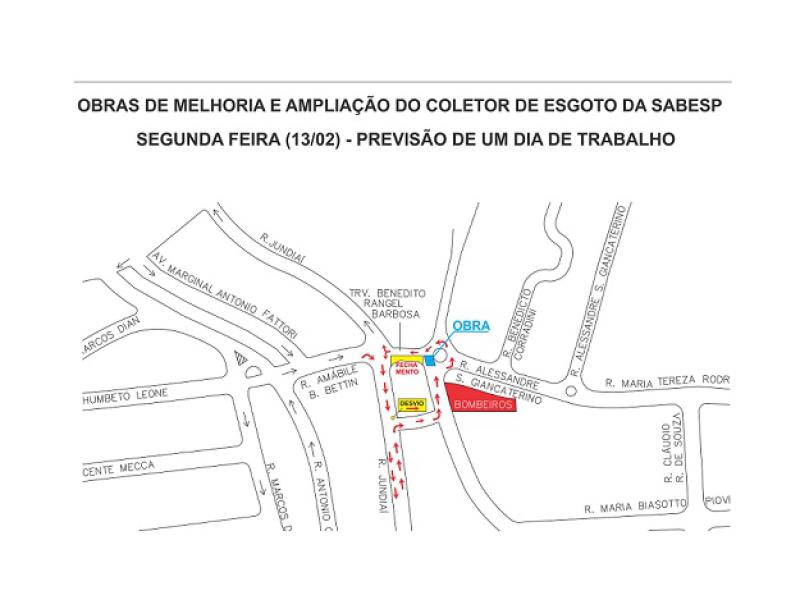 "O acesso entre a Rua Amábile B. Bettin com a Rua Alessandre S. Giancaterino estará interditado," Veja o foto do mapa logo abaixo: