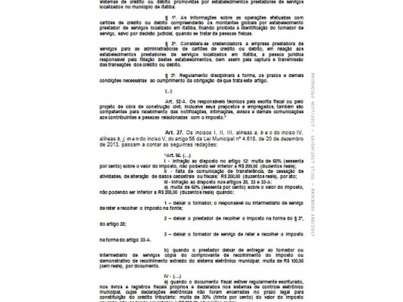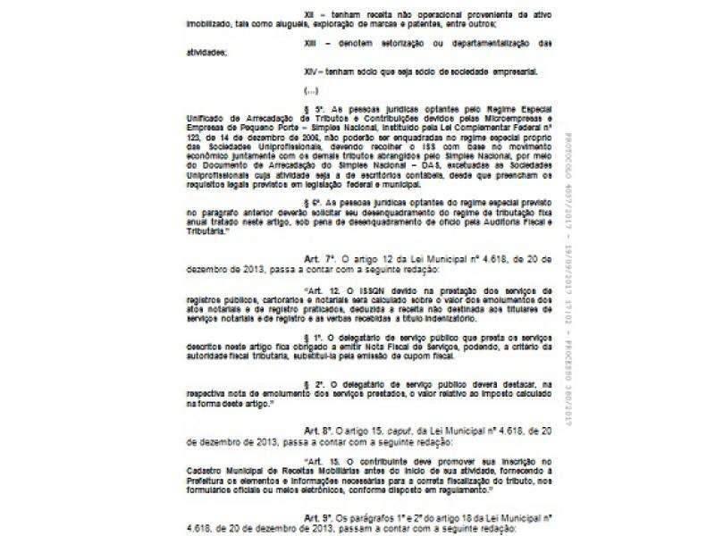 “Em síntese, as alterações que se pretendem introduzir na legislação municipal terão o condão de efetuar as atualizações necessárias quanto à redação da tipificação de multas, dispositivos que tratam da tributação dos tabeliães e cartorários, prestação de serviços de administradoras de cartão de crédito e débito, dentre outras que foram identificadas pelos departamentos técnicos da municipalidade”, diz o prefeito na mensagem ao projeto."