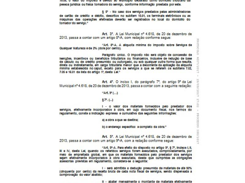 “Em síntese, as alterações que se pretendem introduzir na legislação municipal terão o condão de efetuar as atualizações necessárias quanto à redação da tipificação de multas, dispositivos que tratam da tributação dos tabeliães e cartorários, prestação de serviços de administradoras de cartão de crédito e débito, dentre outras que foram identificadas pelos departamentos técnicos da municipalidade”, diz o prefeito na mensagem ao projeto."