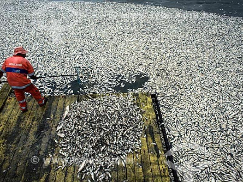"Os pescadores informaram que a situação começou a se agravar no dia anterior quando tainhas e robalos apresentaram falta de oxigênio"