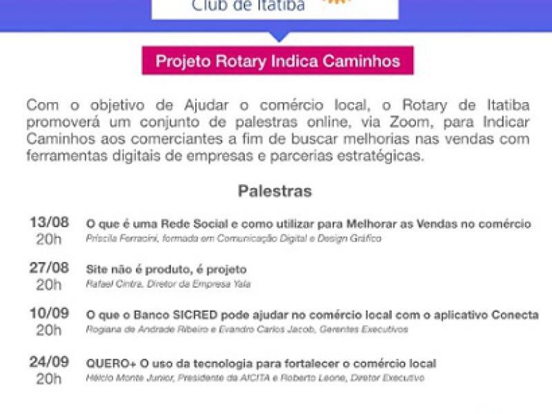 "O Rotary Clube de Itatiba iniciará nesta, quinta-feira 13 de agosto, um ciclo de palestras on-line, com objetivo de ajudar a melhorar as vendas no comércio local"